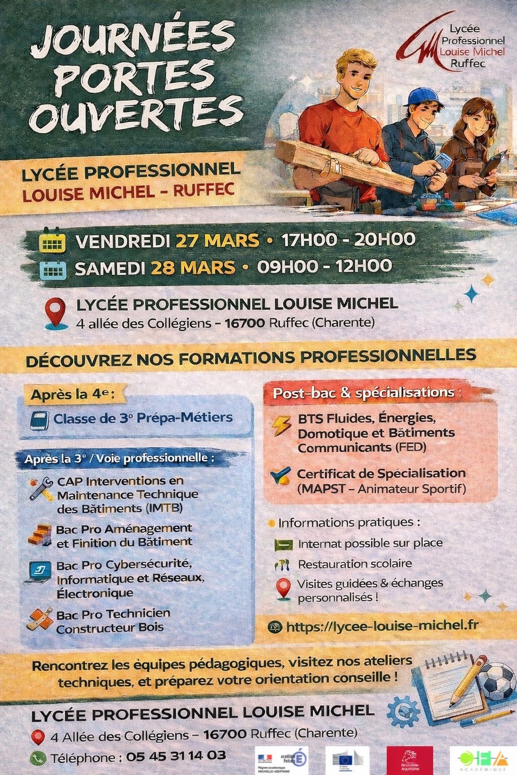 Les journées portes ouvertes du lycée professionnel Louise Michel auront lieu sur les dates :
